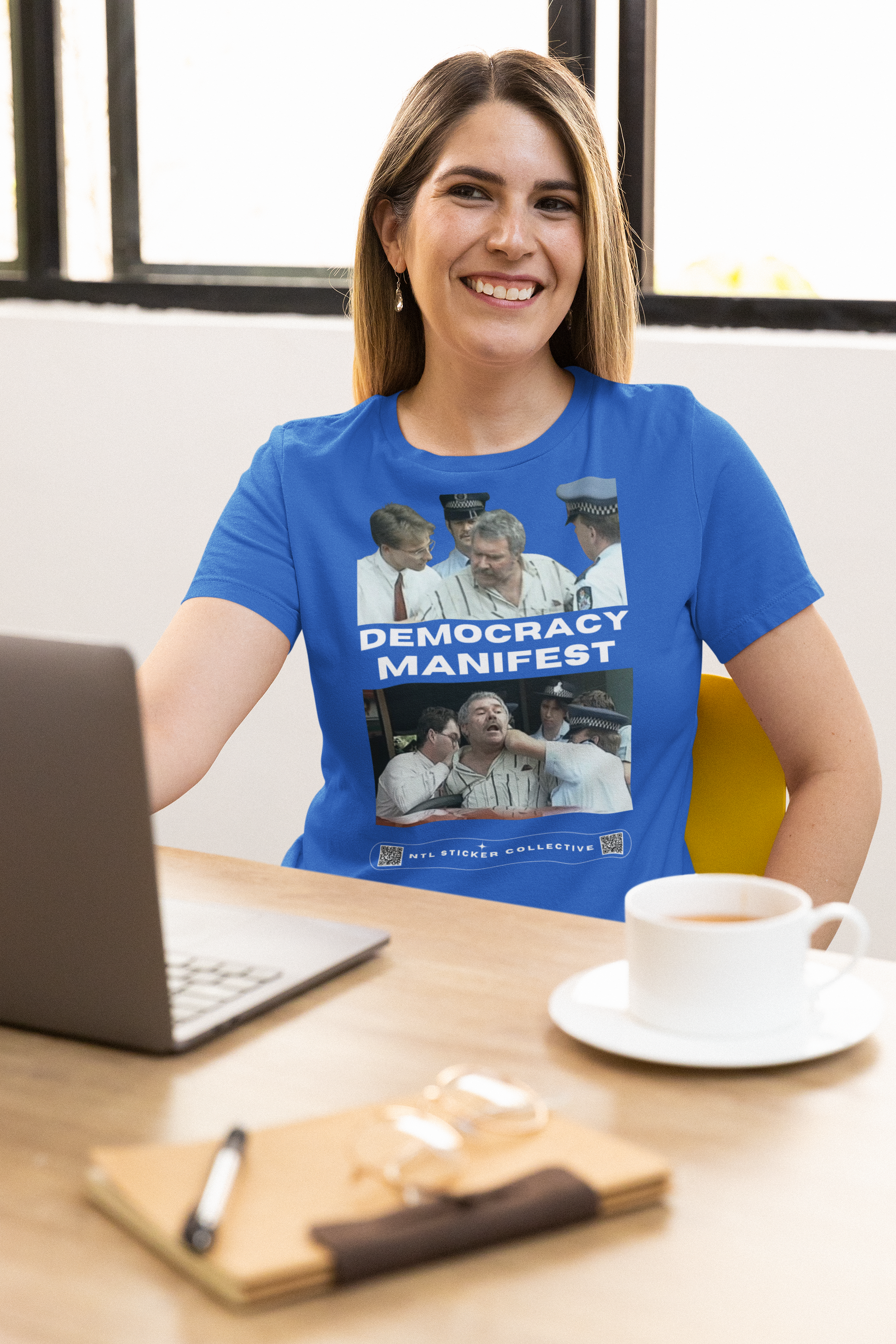 NEW | Democracy Manifest Double Window | Blue | Gildan Unisex Short Sleeve Shirt